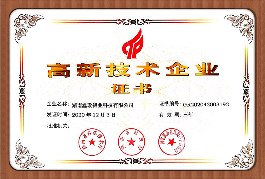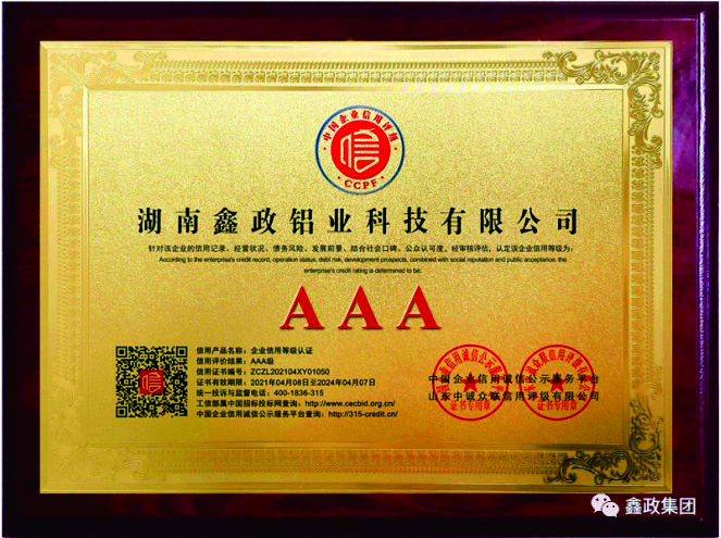 瀏覽次數(shù):1151近日,鑫政集團(tuán)子公司鑫政鋁業(yè)喜報(bào)頻傳,再獲殊榮。根據(jù)湖南省2020年高新技術(shù)企業(yè)認(rèn)定規(guī)定,經(jīng)專家評審、權(quán)威公示等程序,鑫政鋁業(yè)憑借產(chǎn)品研發(fā)、科研人才培養(yǎng)、質(zhì)量把控等方面的出色表現(xiàn),榮獲“高新技術(shù)企業(yè)”榮譽(yù)稱號。同時,經(jīng)過中國企業(yè)信用誠信公示服務(wù)平臺的嚴(yán)格審核,該公司榮獲“AAA級企業(yè)信用等級”證書。